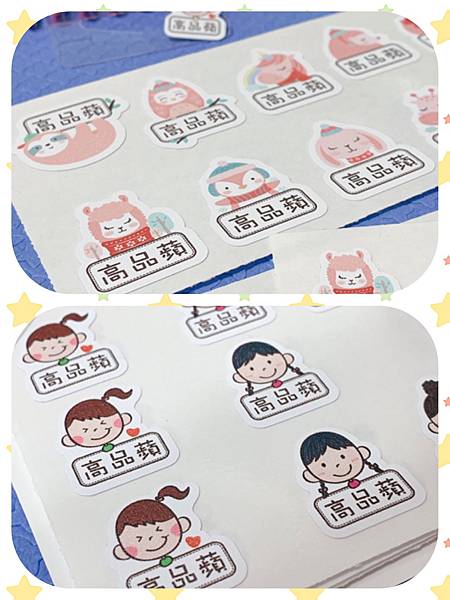 這次做的防水姓名貼,有很多圖案可以選,而且男寶的圖案都好可愛喔!我覺得男生的配色比較多彩飽和,女生的好像都很偏粉紅色,還是因為我無意識都選粉色系列😅