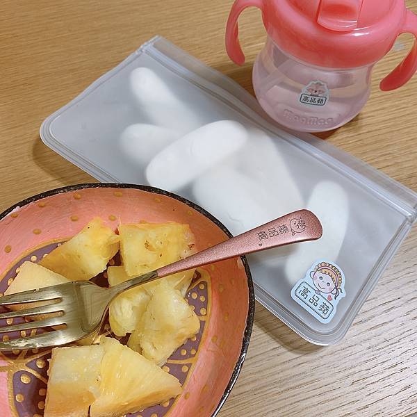 餐具組是因為芋圓不太喜歡兒童專屬的餐具,看起來顏色很繽紛,好像玩具,反而是大人的餐具他會一直吵著要吃要玩,乾脆做一個姓名餐具組,還有送盒子,帶出去不管怎麼玩、怎麼丟,也不怕和店家的『撞餐具』或找不回來了~