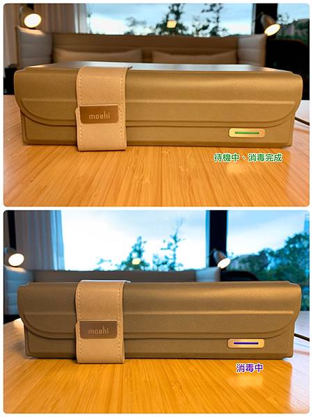 - 360度無死角殺菌:不像一般的殺菌盒,放在底部的那面就是死角,消毒完要手動翻過來才能徹底殺菌。Moshi在底部有設計透明增高墊,四邊也都有金屬反光板,讓紫外線在盒子內交替反射達到最佳的殺菌效果。