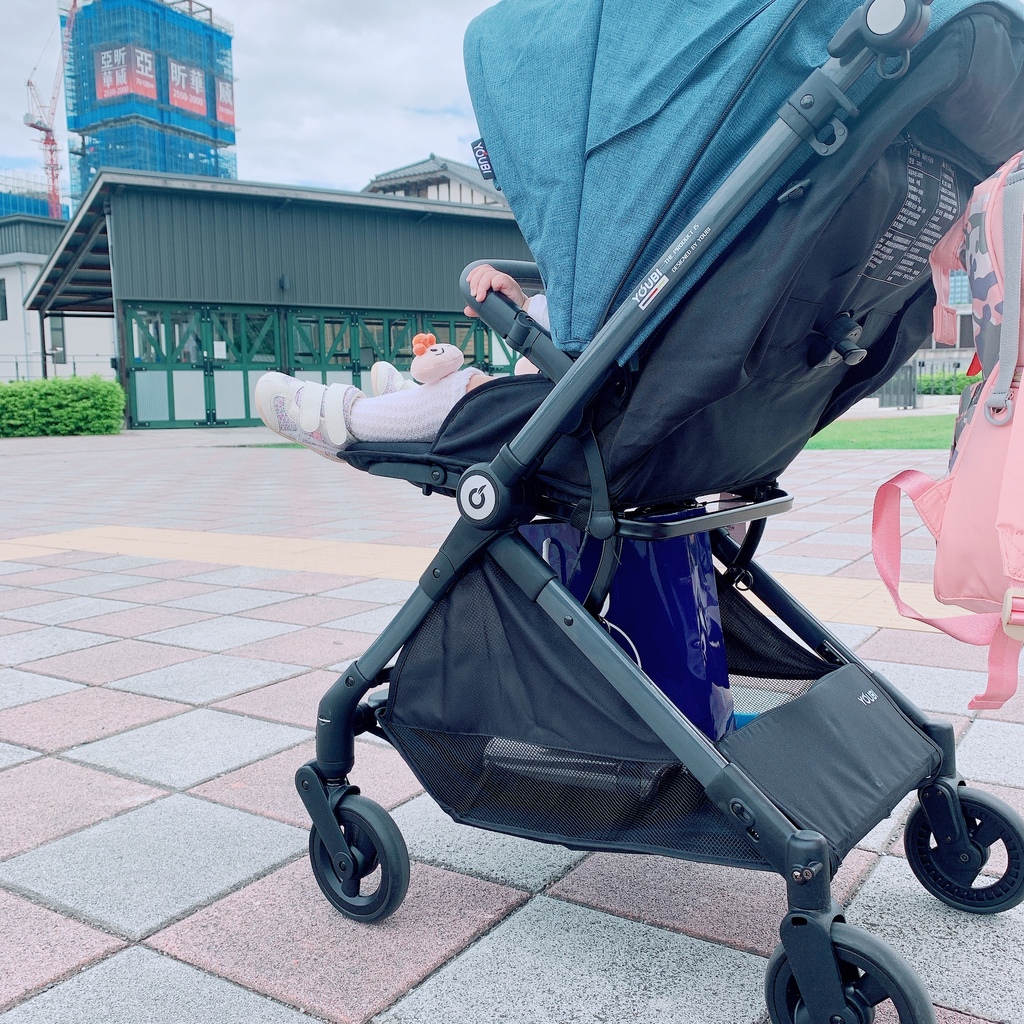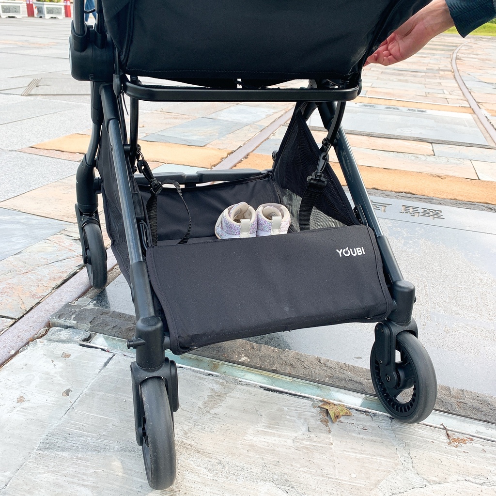 另外高景觀的YOUBI不只輪胎夠承載,在崎嶇的人行道也能和之前的COMBI一樣暢行無阻,能看得出德國品牌絲毫不馬乎,雨罩超罩的👍,在車身和把手的轉彎、接縫處,都能發現到材質很講究❤️,雖然是輕巧型,底部的空間也很夠。